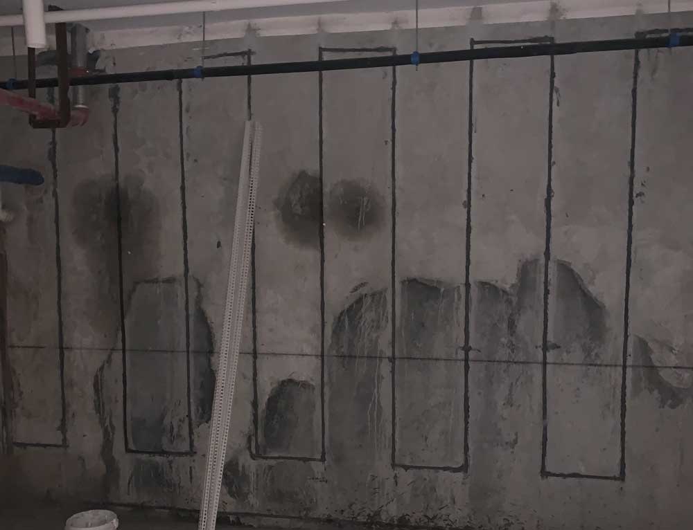 经过多方考察,品冠装饰公司最终选择了立威电渗透智能防潮系统。该技术通过微电流作用,主动将墙体中的水分子由正极(建筑结构)导向负极(外部土壤),从根源上阻断水分渗透,实现墙体持久干燥。相较于传统防水涂料或被动式防潮膜,电渗透系统无需破坏原有结构,安装便捷,且后期几乎无需维护。